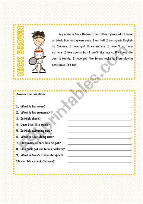 Improving Your Skills In Elementary Esl Reading Comprehension Worksheets To Make A Statement