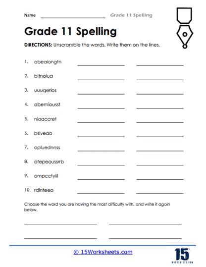 Latest Trends In Grade 11 Spelling Worksheets To Impress Everyone