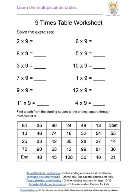 printable math worksheets multiplication 9 times table 2 Education from www.pinterest.com